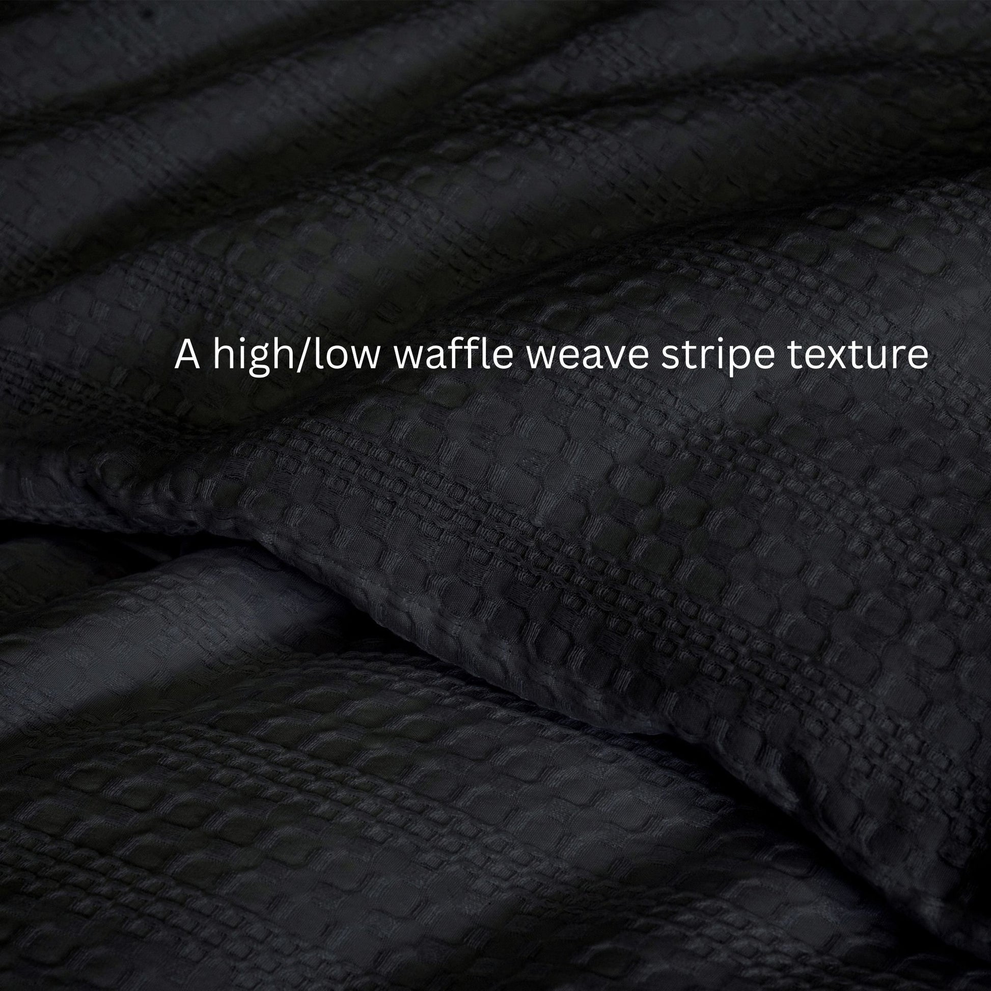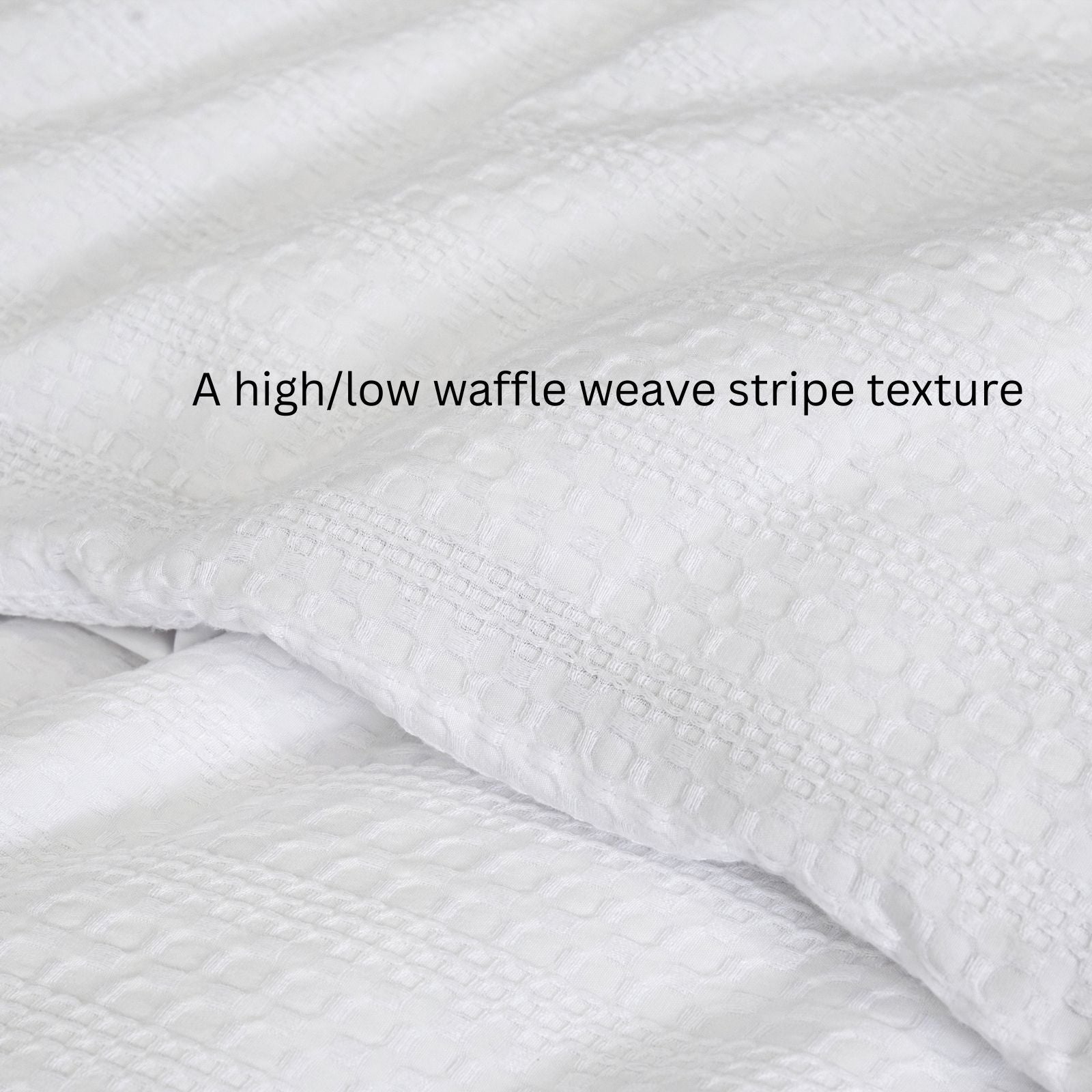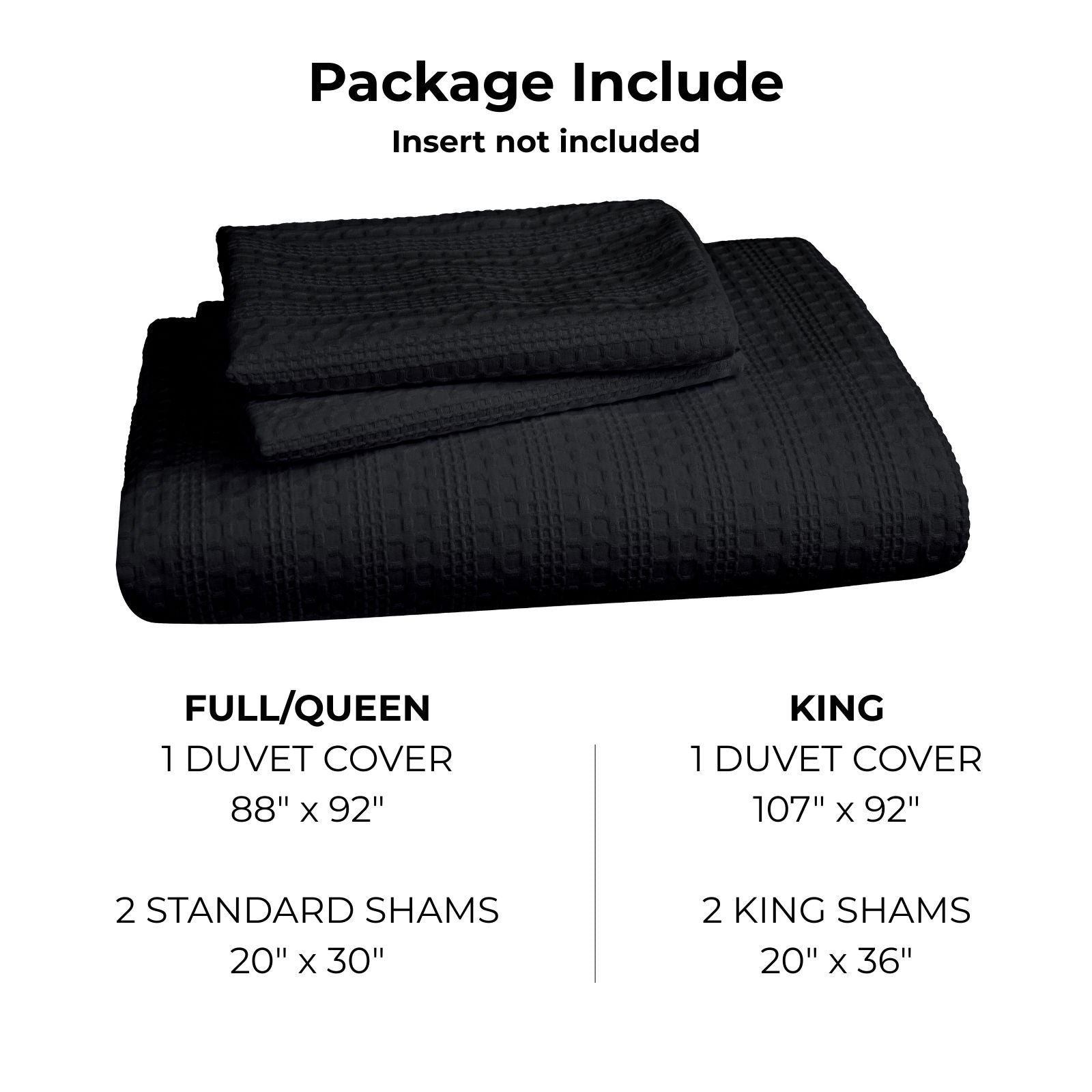 Transform your bedroom with the Pyxie Home 3-Piece Soft Waffle Duvet Cover Set, crafted from 100% microfiber polyester for a wonderfully soft fabric feel. This set features a cozy waffle weave with a subtle stripe texture, adding both dimension and sophisticated comfort to your space. It includes one duvet cover and two matching shams. The duvet cover is designed with a hidden button closure and four interior corner ties to keep your comforter securely in place, while the shams feature an envelope closure for a neat finish. This entire set is machine washable for easy care and maintenance. Made in China.