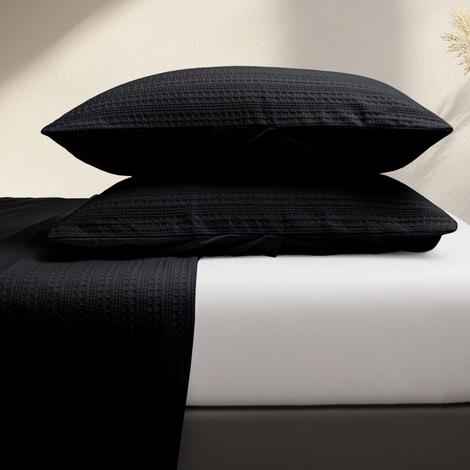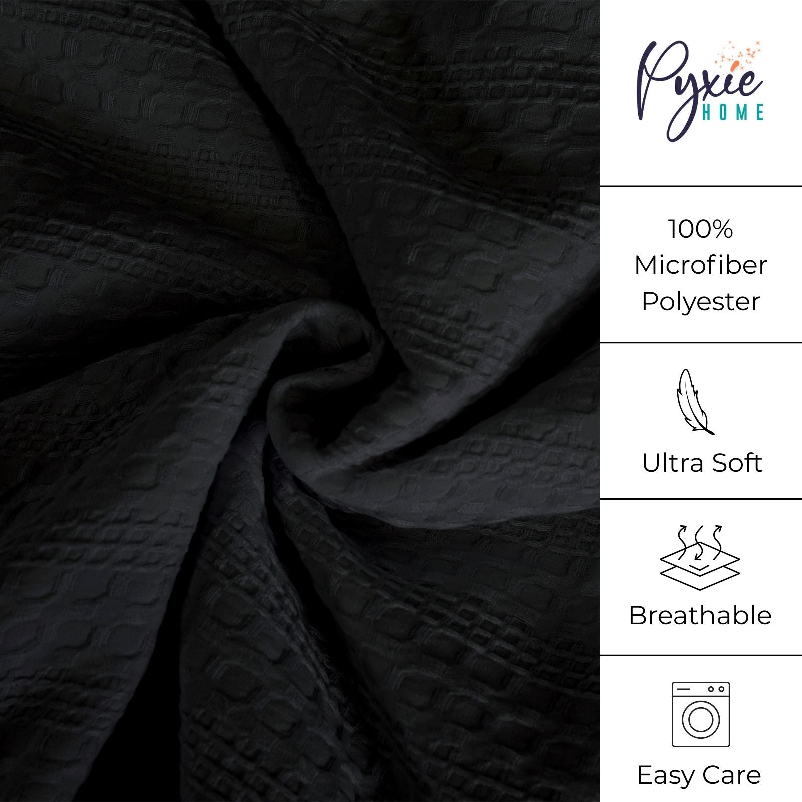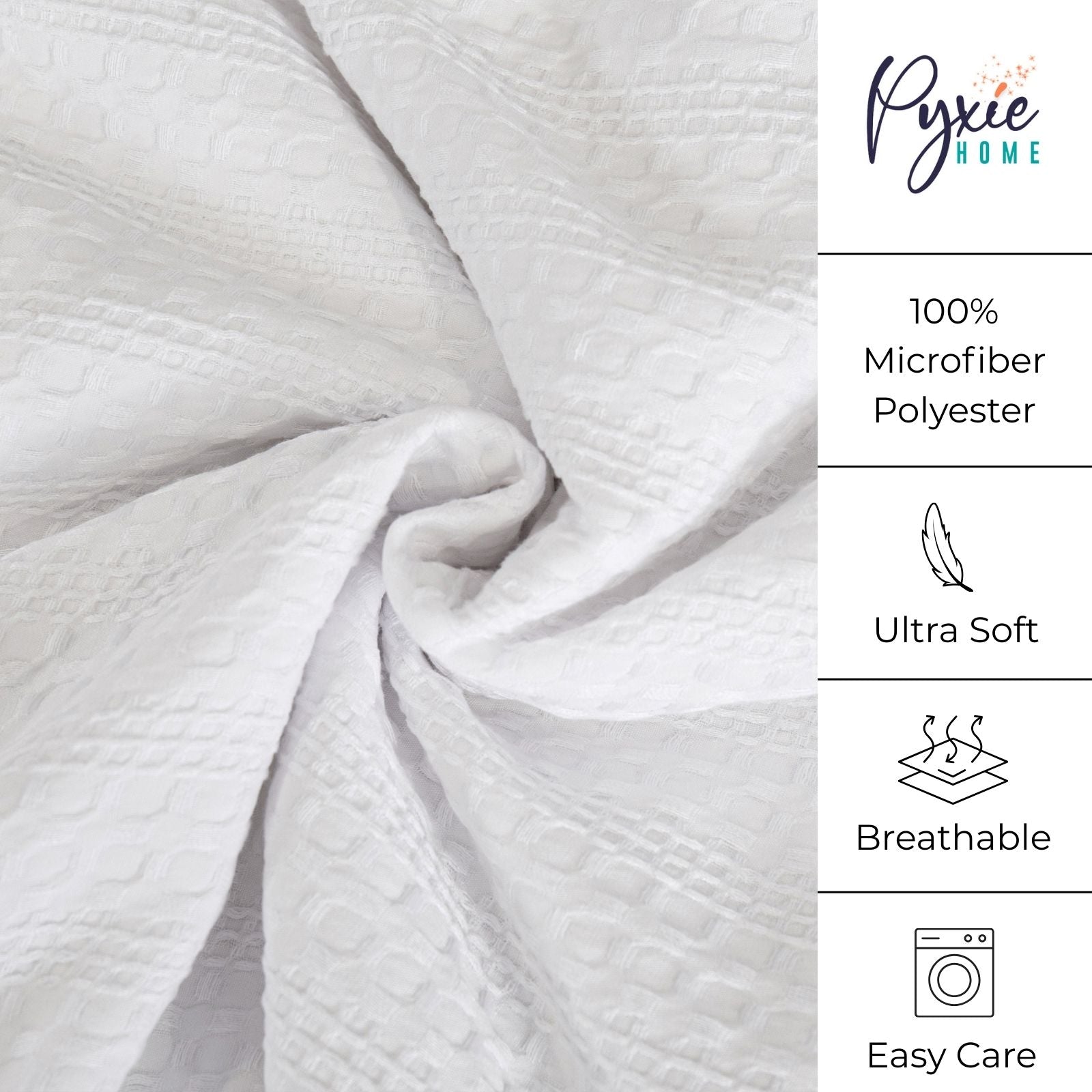 Transform your bedroom with the Pyxie Home 3-Piece Soft Waffle Duvet Cover Set, crafted from 100% microfiber polyester for a wonderfully soft fabric feel. This set features a cozy waffle weave with a subtle stripe texture, adding both dimension and sophisticated comfort to your space. It includes one duvet cover and two matching shams. The duvet cover is designed with a hidden button closure and four interior corner ties to keep your comforter securely in place, while the shams feature an envelope closure for a neat finish. This entire set is machine washable for easy care and maintenance. Made in China.