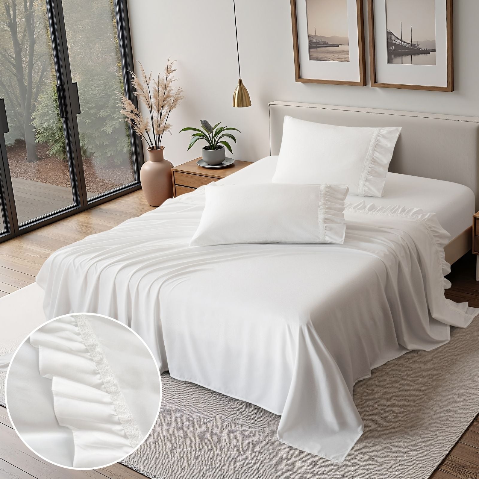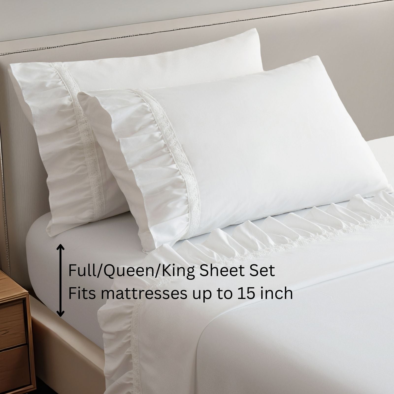 Romantic White Lace Ruffle Sheet Set